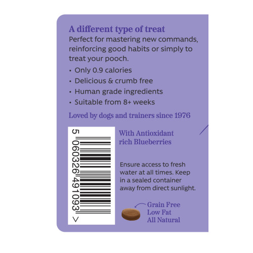 • Natural Dog Treats     Great taste and aroma of liver with the natural sweetness of blueberry - low in fat - perfect for training